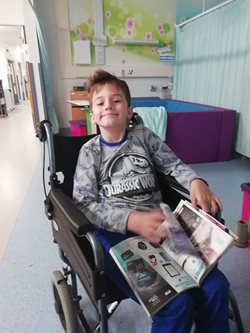 We had been in hospital around a week when Mylo complained of a headache, which is not uncommon after this kind of surgery, He also began vomiting. It was all put down to the surgery. The next morning I noticed that Mylo was leaking fluid from his incision site. He was given a local anaesthetic and re stitched and were told he could go home in a couple hours but to keep an eye on his temperature. He was still vomiting and had headaches but he was happy to be home.
