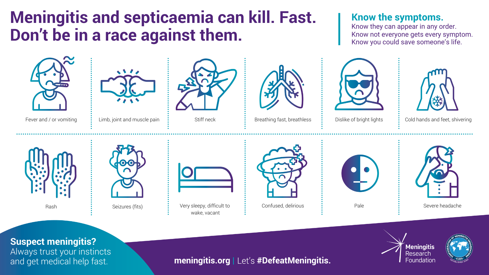 Download our meningitis symptoms for social media: Facebook | Instagram | LinkedIn | Twitter